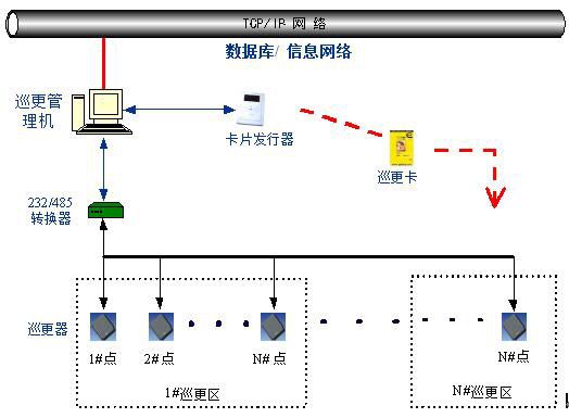 其基本的原理就是在巡查线路上安装一系列代表不同点的射频卡(又称感应卡,信息钮,有固定的不同卡号),巡查到各点时巡查人员用手持式巡更棒读卡,把代表该点的卡号和时间及情况同时记录下来。巡查完成后巡更棒通过通讯线或无线传输把数据传给计算机软件处理,就可以对巡查情况(人员、地点、时间、情况等)进行记录和考核,实现人员的科学化管理。
